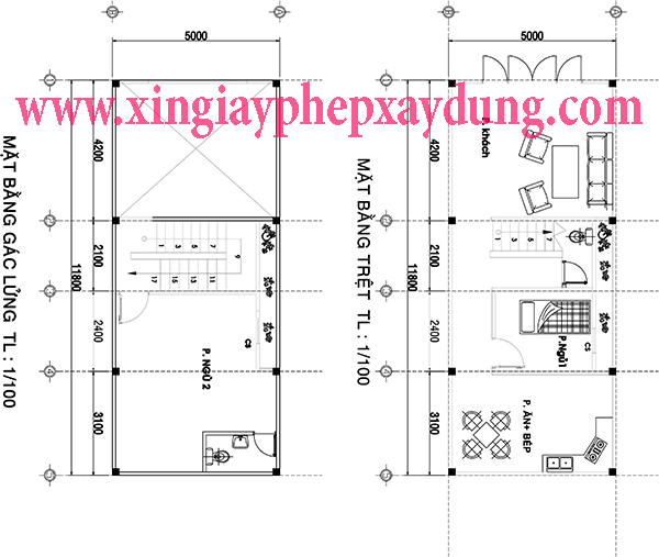 Mặt bằng trệt + mặt bằng lửng nhà gác lửng 4x14