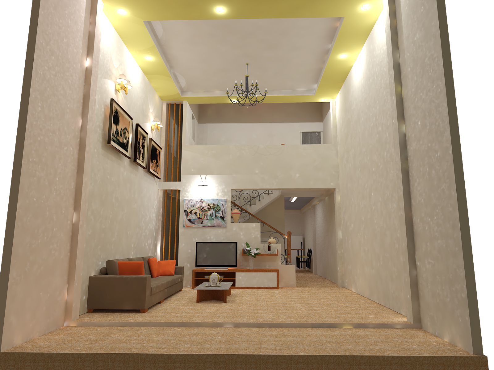 Kiểu nhà gác lửng này có phòng khách tượng đối đẹp, gác đổ giả, chi phí cũng tương đối rẻ.